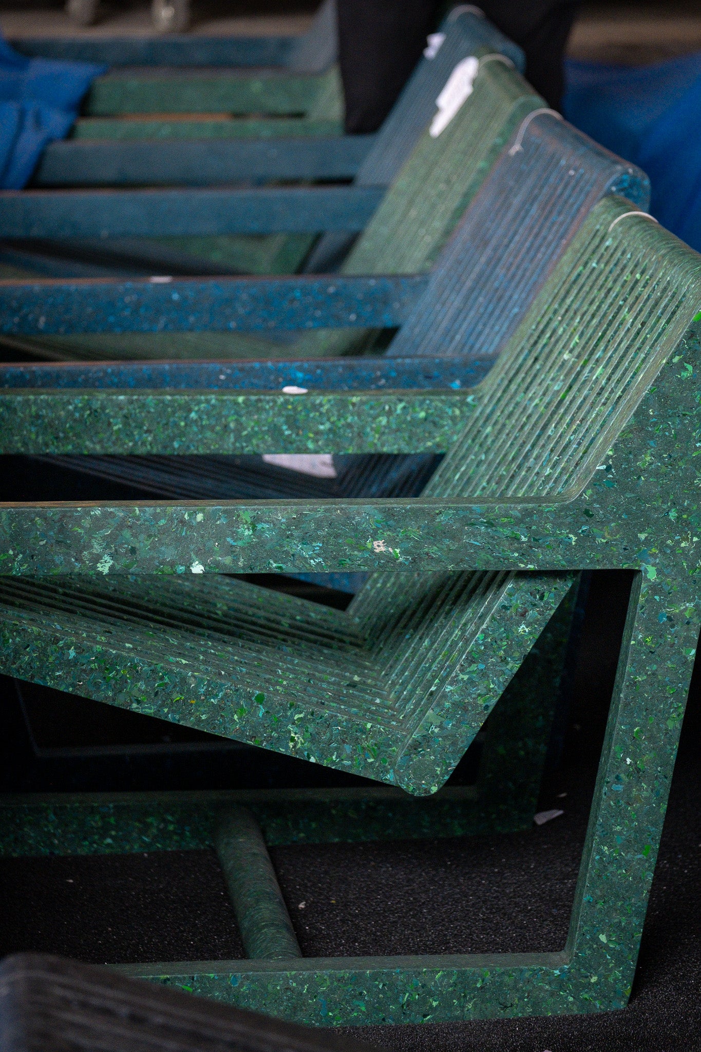 The plastic bags we use go through an intensive cleaning process, thoroughly washing and removing any remnants from their past. Next, through shredding and heat-pressing methods, plastic bags are transformed into hard, durable sheets, forming the foundation of contemporary furniture.