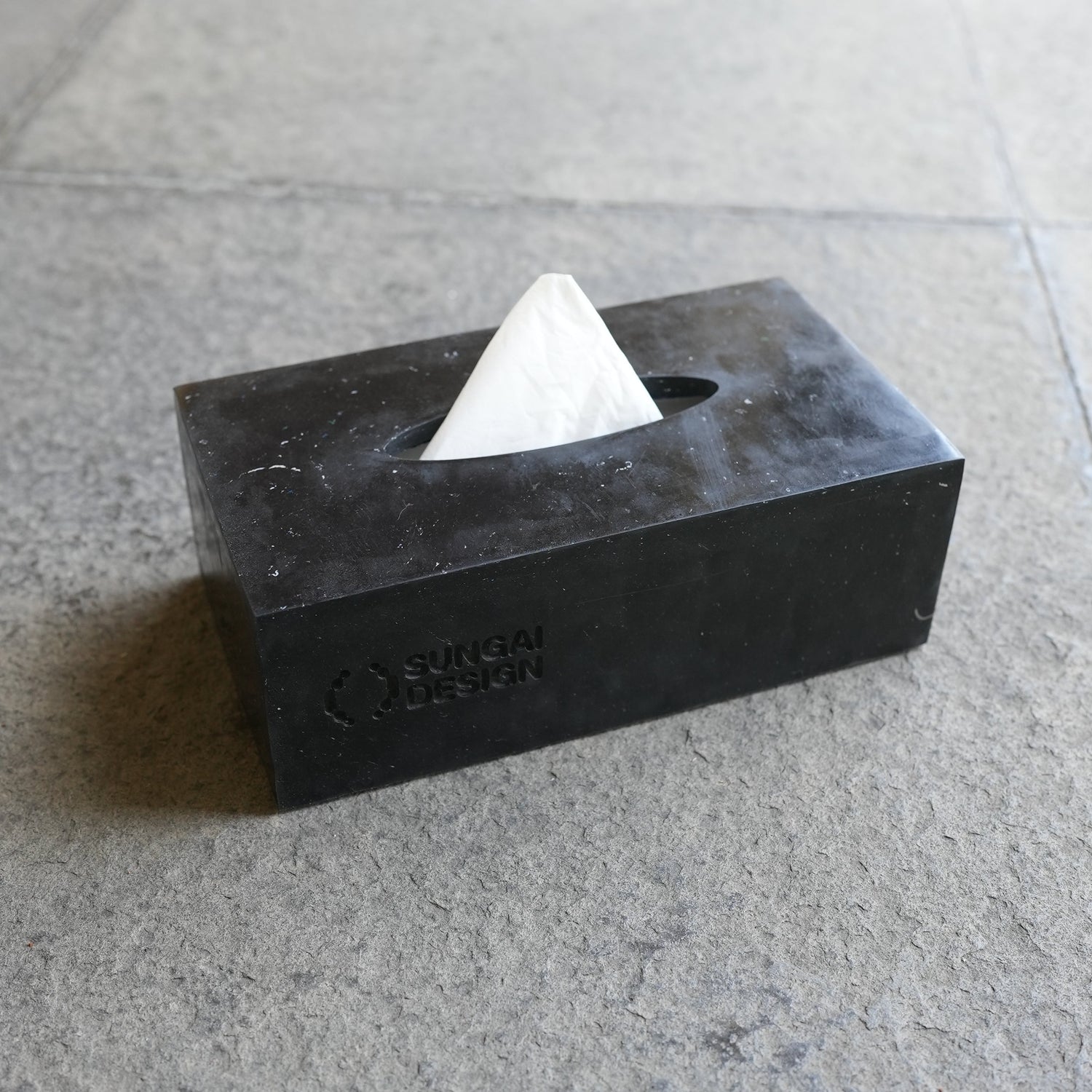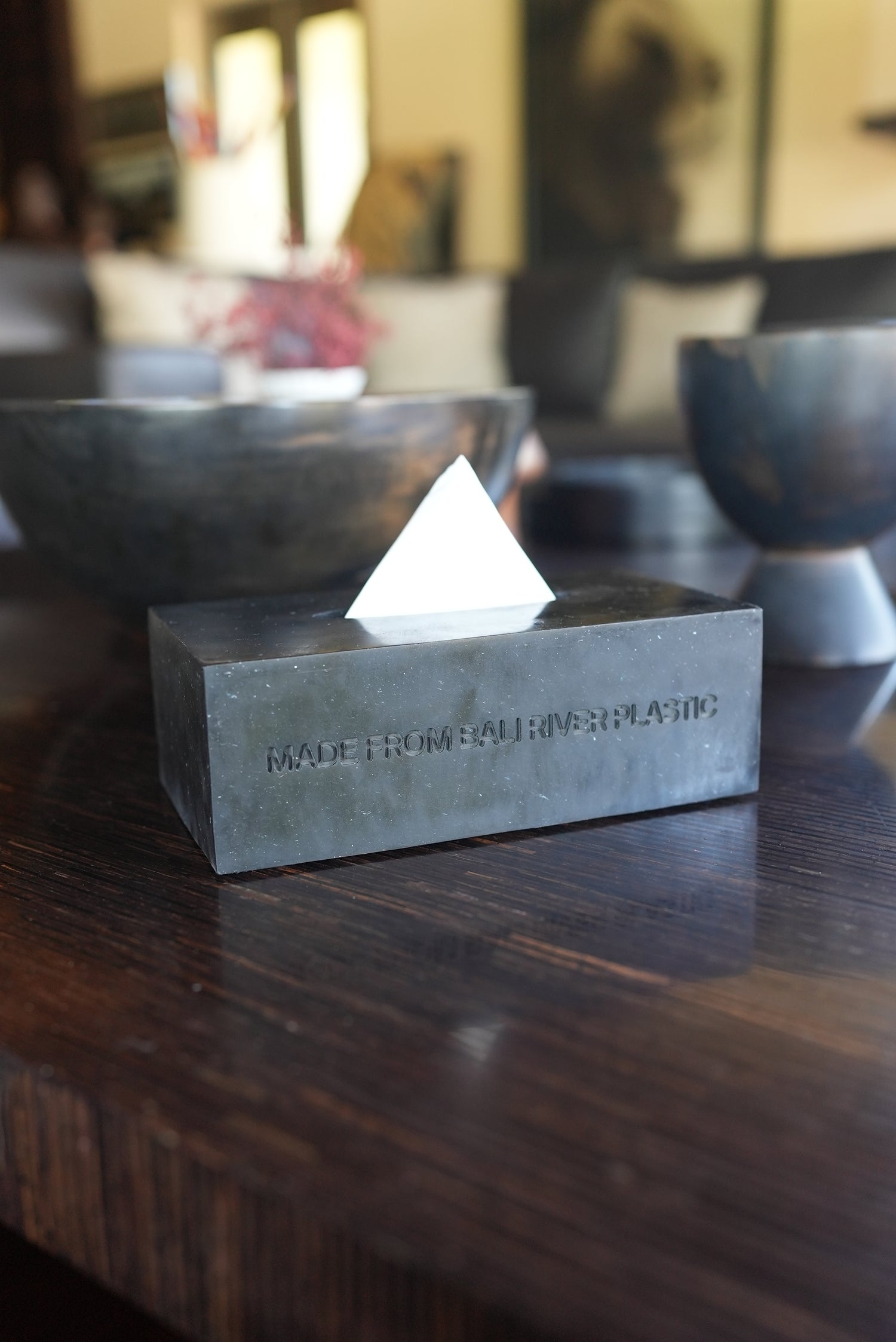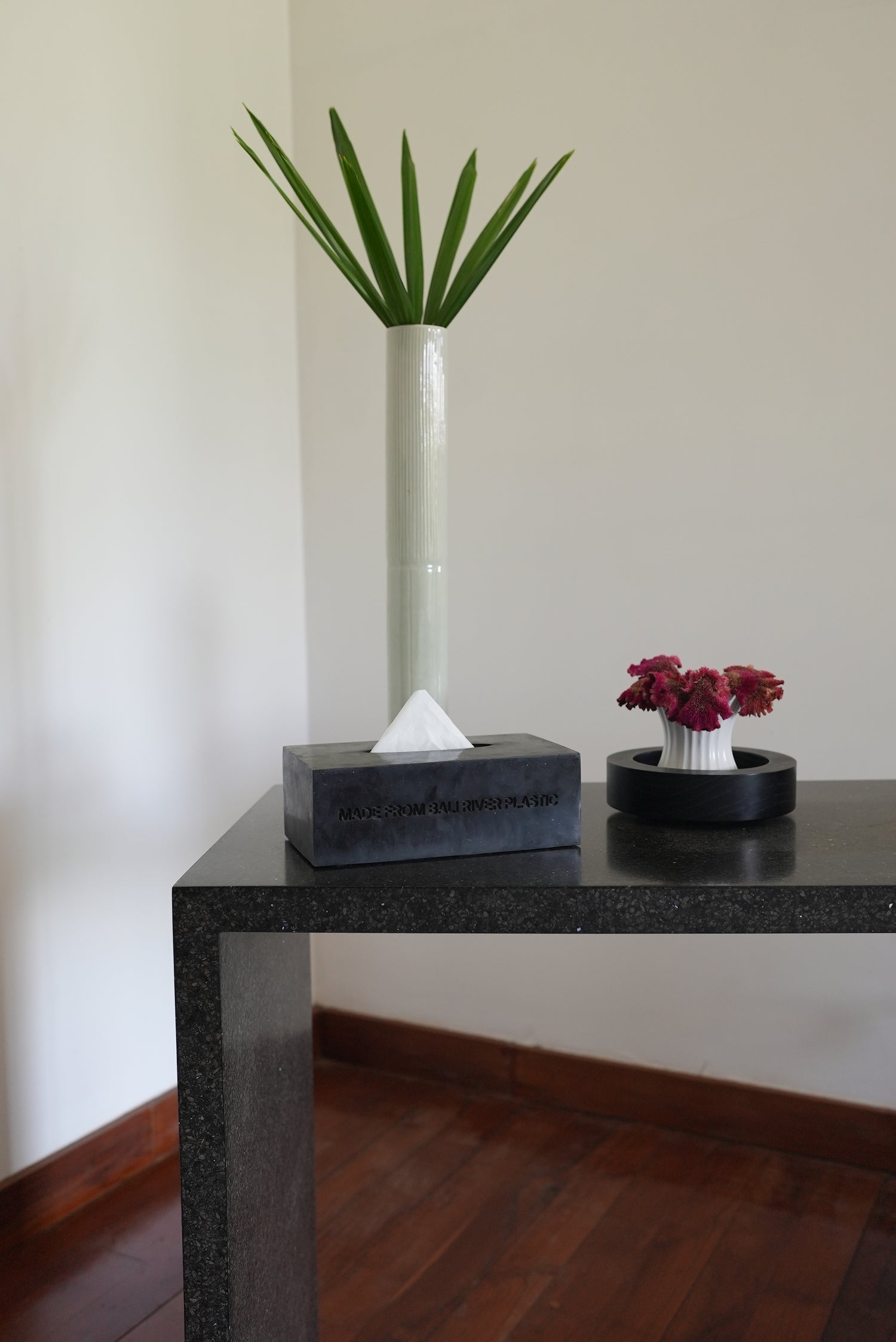 Its clean form and recycled texture elevate it as both a discreet object and a statement piece. Available in four colors, white, black, blue, and green, the Kotak Tissue Box is a small, design-item that’s accessible and will help us on our mission to clean and protect Indonesia’s rivers.