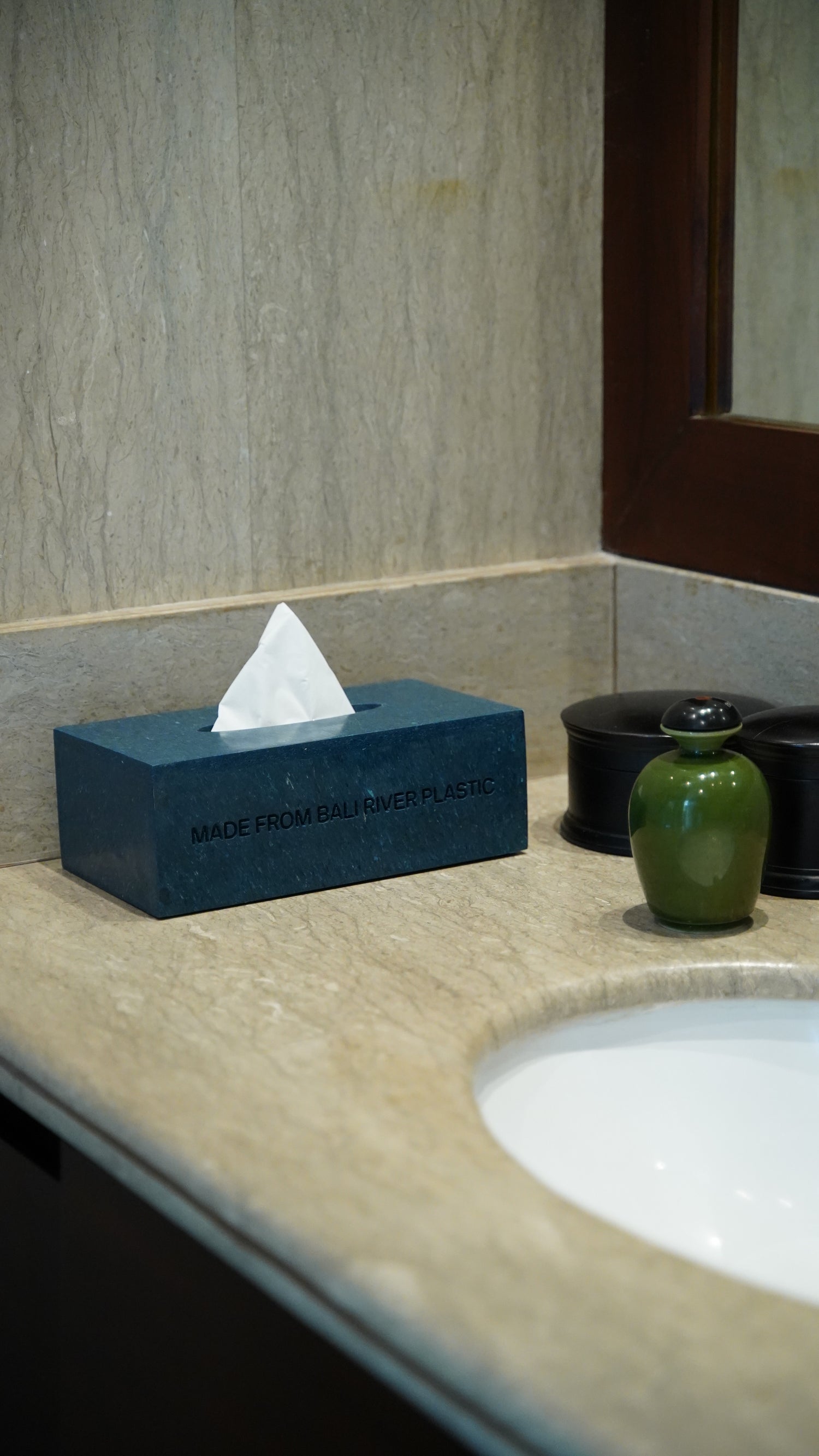 Crafted from 100 upcycled plastic bags collected from rivers by Sungai Watch, Kotak is the perfect tissue box for everyday spaces. With its perfectly rectangular shape and clean lines, this tissue box blends into any setting. Designed to be minimalist but have maximum presence with it’s saying “Made From Bali River Plastic”, the Kotak Tissue Box brings impact into your space, whether for bathrooms, office desks, bedrooms, living rooms, or other environments.