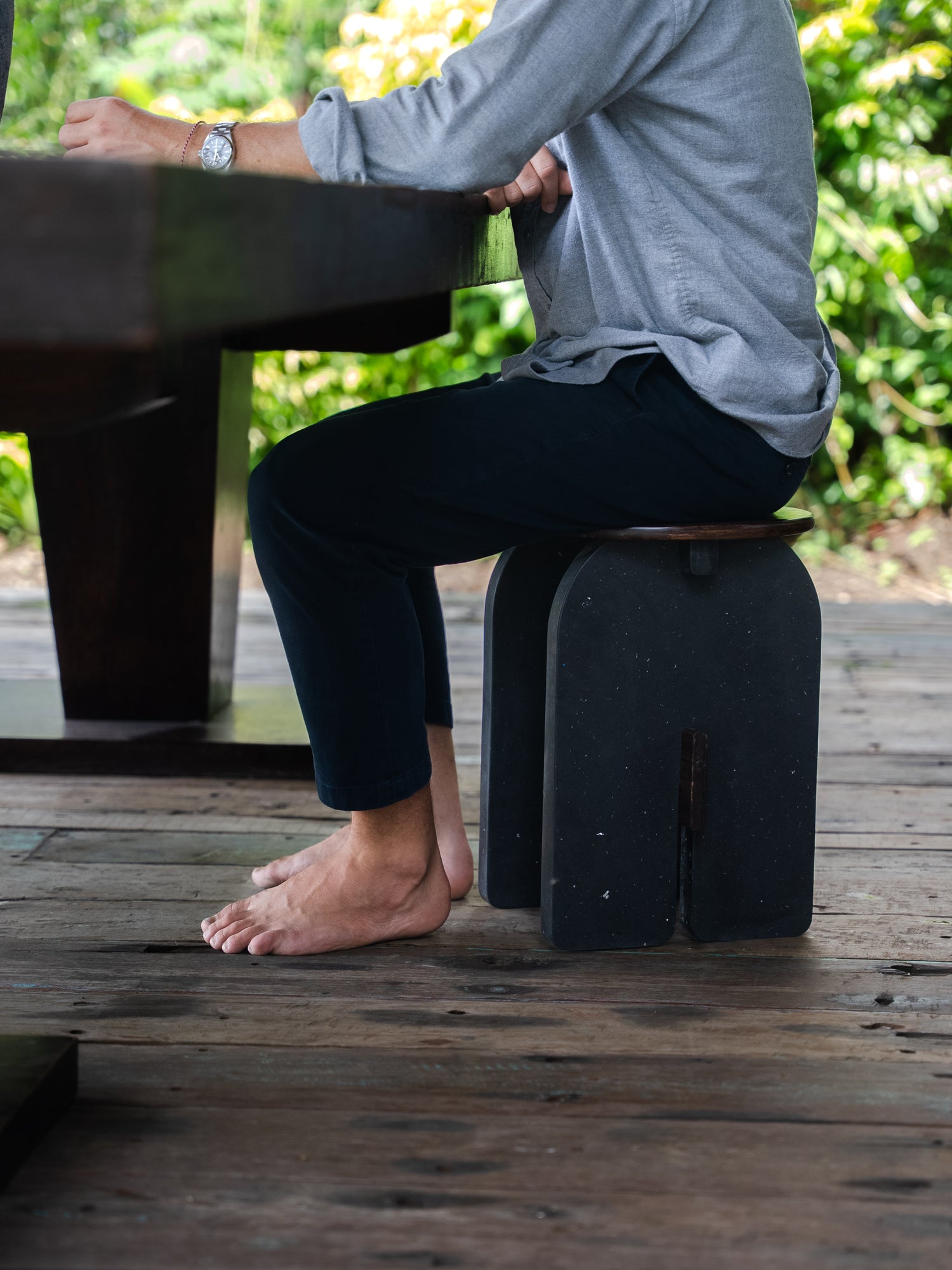 The Muara Stool Reclaimed Edition is an innovative multi-purpose piece developed in collaboration with ChopValue, merging Sungai Design’s refined aesthetic with advanced reclaimed materials.
