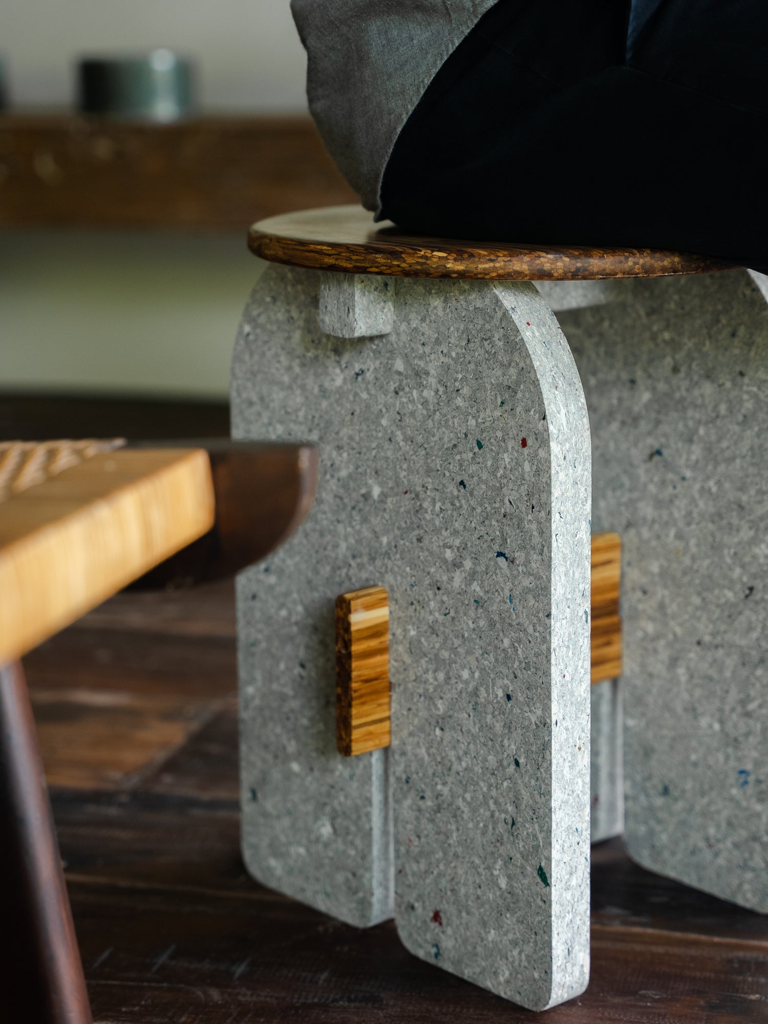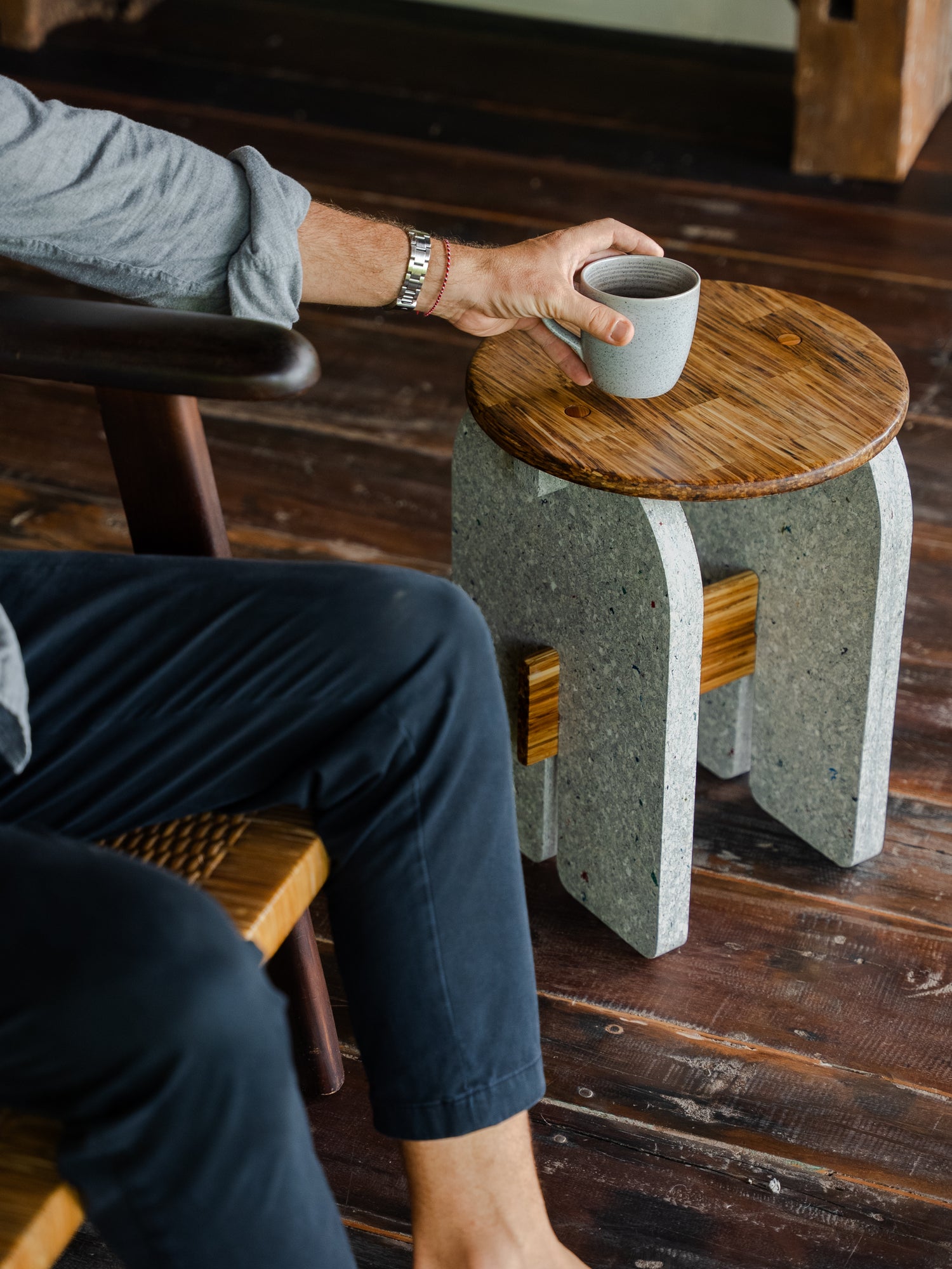 The Muara Stool Reclaimed Edition is an innovative multi-purpose piece developed in collaboration with ChopValue, merging Sungai Design’s refined aesthetic with advanced reclaimed materials.