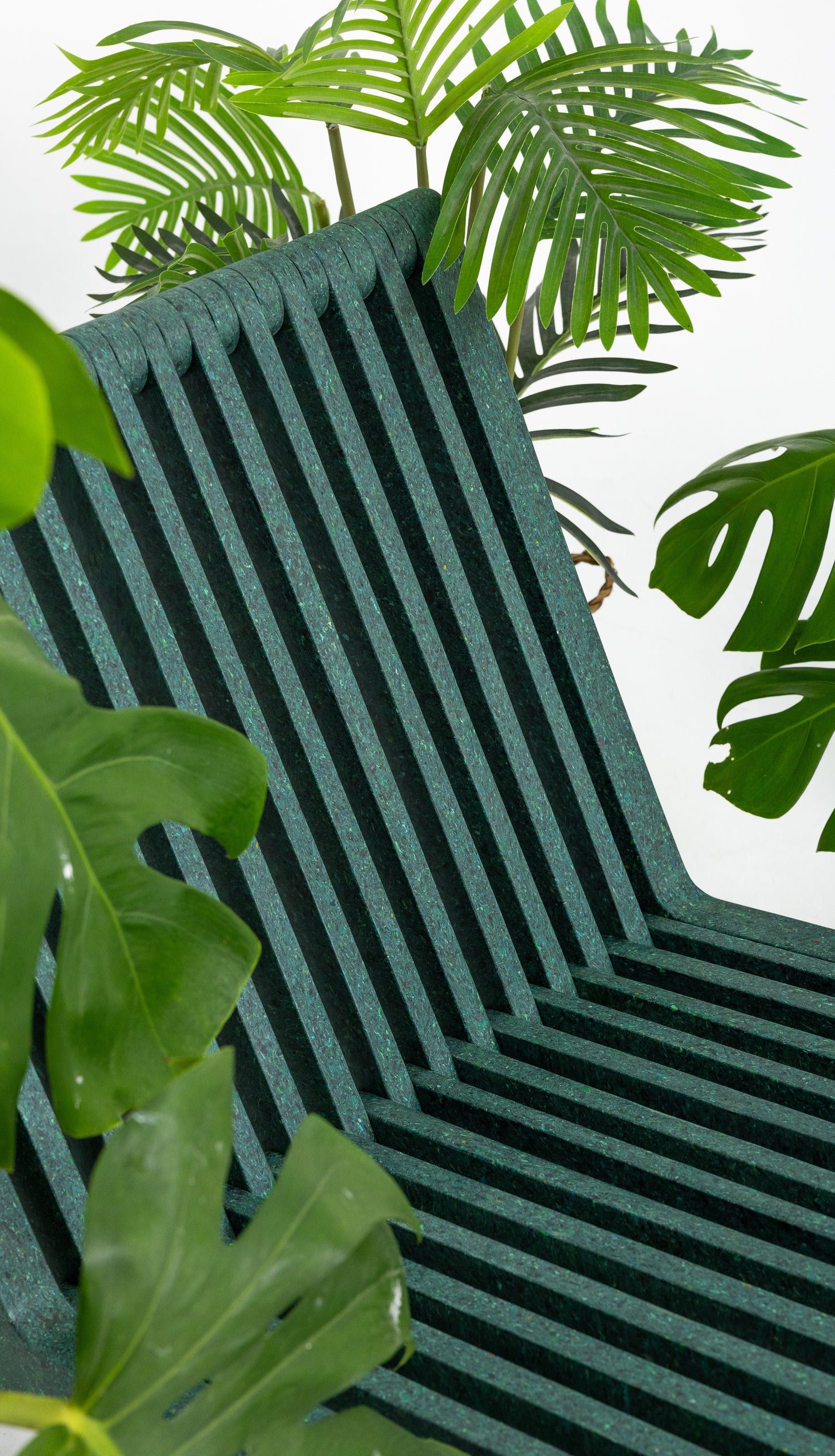 No two chairs are alike. Each one tells its own story through unique textures, patterns, and tones, a celebration of the work of our non-profit partner, Sungai Watch, using 100% river plastic as our raw material, celebrating circular design.