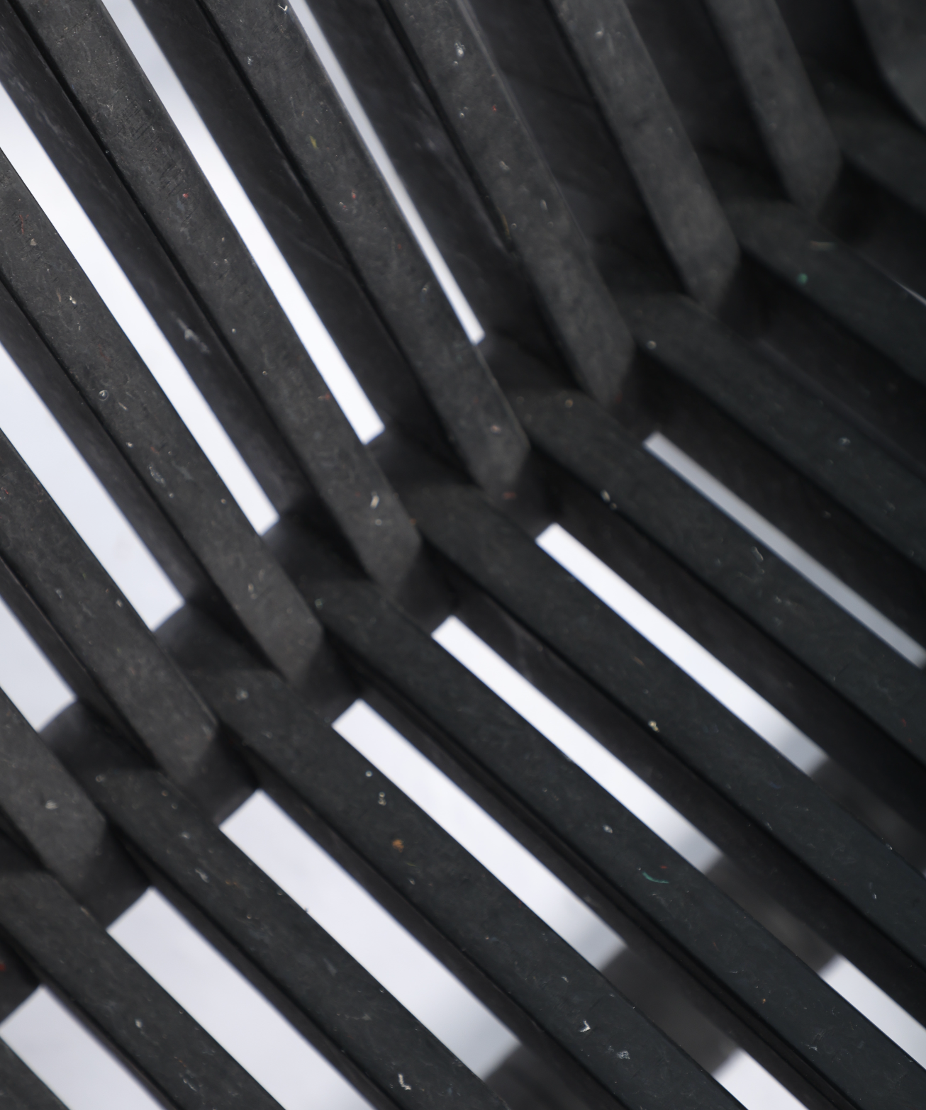 No two chairs are alike. Each one tells its own story through unique textures, patterns, and tones, a celebration of the work of our non-profit partner, Sungai Watch, using 100% river plastic as our raw material, celebrating circular design.